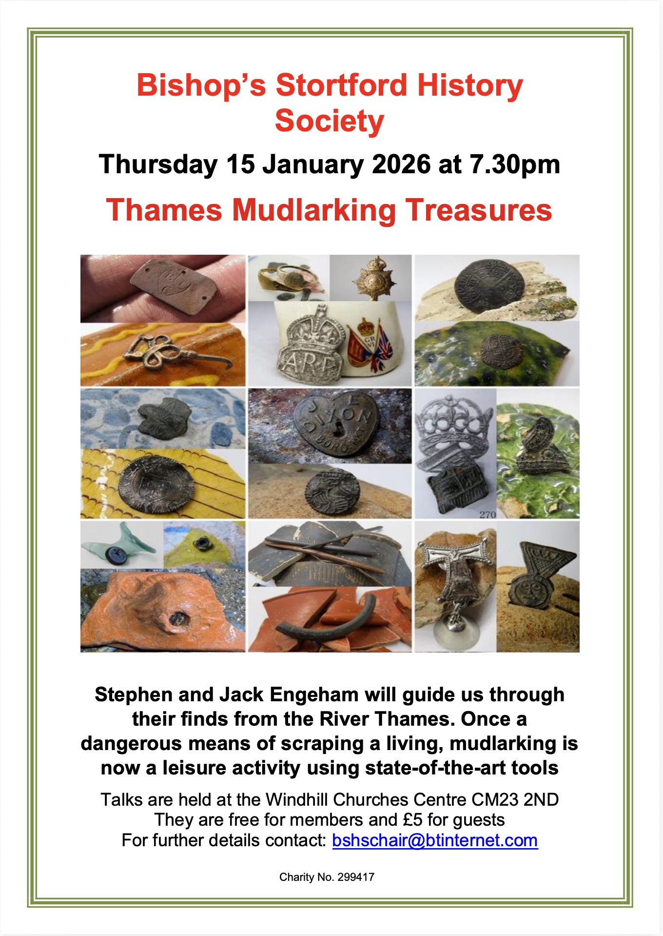 - Next Talk – Thurs 15 Jan – Thames Mudlarking Treasures