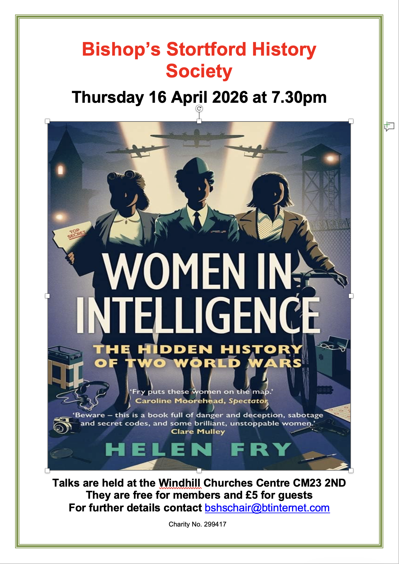 - Next Talk – Thurs 16 April at 19:30: Women in Intelligence: The Hidden Story of the two World Wars